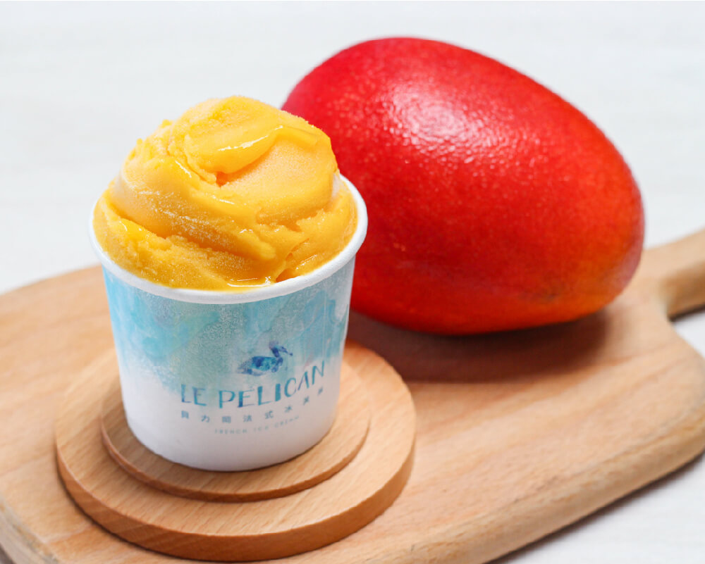 此外,我們為了保持原汁原味,冰淇淋中絕不添加任何色素香料。每盆冰淇淋需使用近3公斤的芒果,以確保每一口都可以細細品味濃濃的芒果香氣。