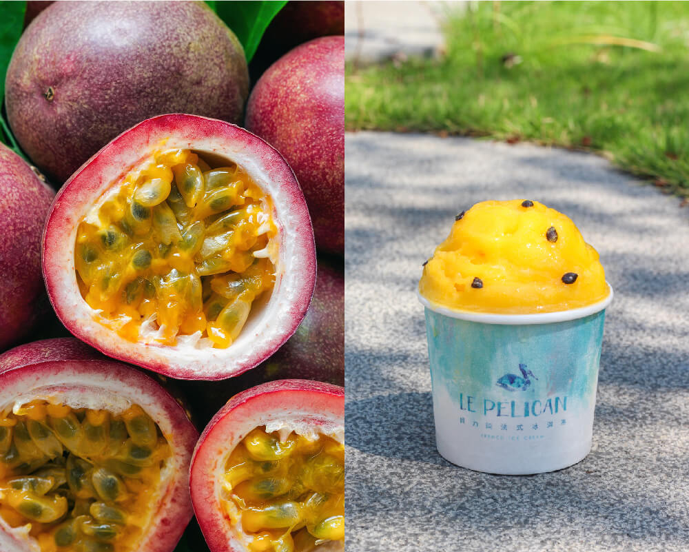 我們採用南投埔里的百香果,並待百香果外皮稍皺自然熟成至最佳甜度後,再以手工一顆顆取汁,搭配上法國主廚的手藝,將百香果的酸勁和清甜兩種風味達到完美的平衡。