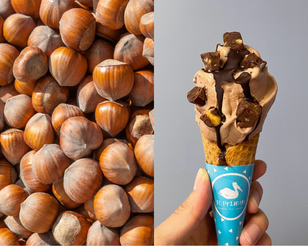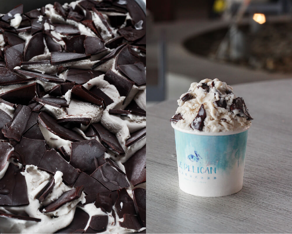 再將大量的手工榛果巧克力,拌入細緻滑順的頂級比利時巧克力冰淇淋中,兼具口感和香醇濃郁,榛果和巧克力香氣完全佔據味蕾。