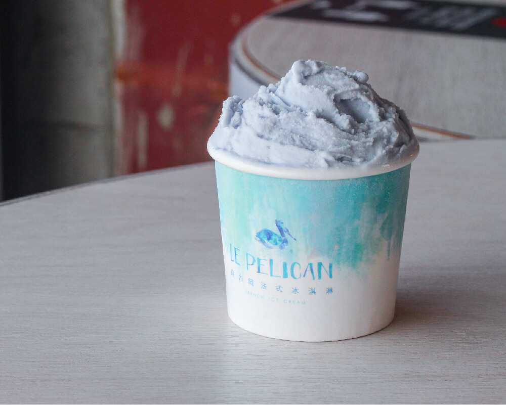 採用蝶豆花將鮮乳冰淇淋渲染成的天然色澤,帶著可爾必思的清甜和鮮乳的奶香。