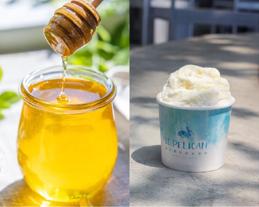 我們採自台中霧峰的龍眼蜂蜜,龍眼蜜帶有天然龍眼花的甜香,口感溫潤、底蘊綿長。並結合娟姍牛乳製成冰淇淋,入口細緻綿密,清甜龍眼花香和濃郁奶香,交織出淡雅清爽的春天滋味。