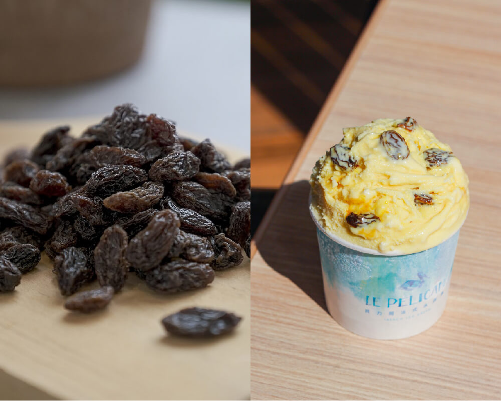 冰淇淋的製作上則是將蘭姆酒和鮮奶柔和,濃郁奶香中透出蘭姆酒香,並以浸滿蘭姆酒的葡萄乾增添口感。