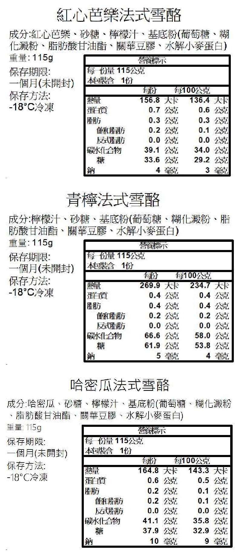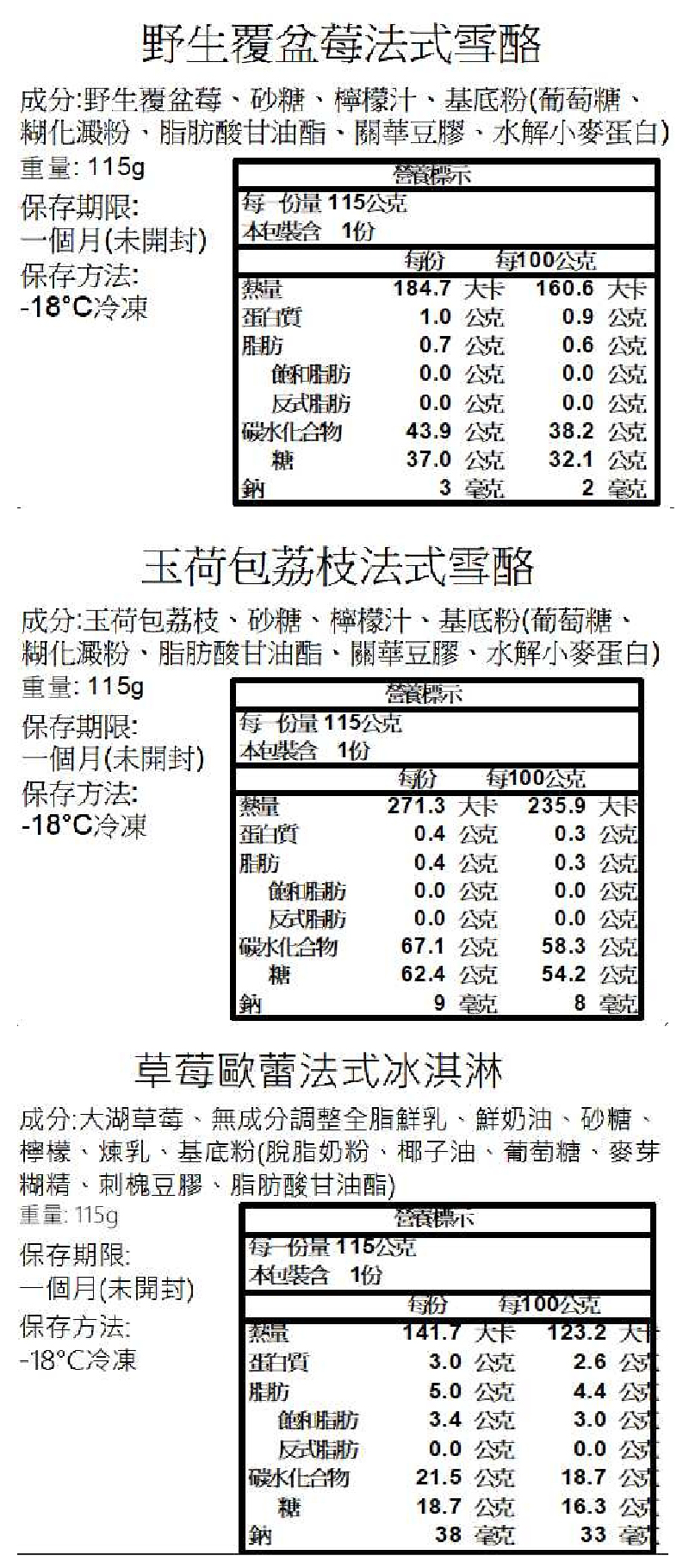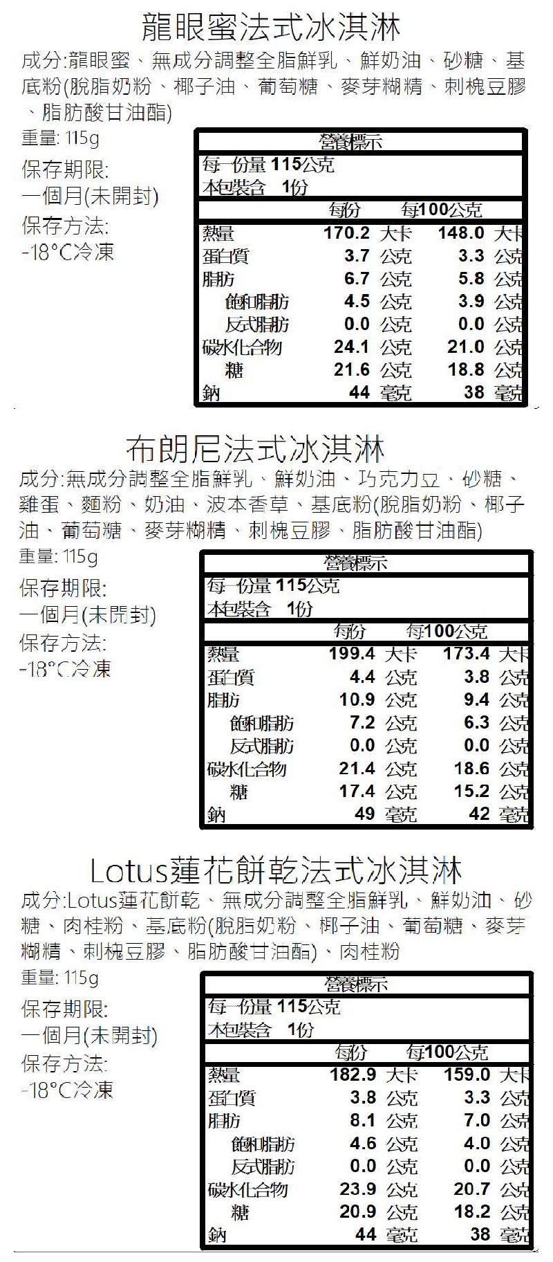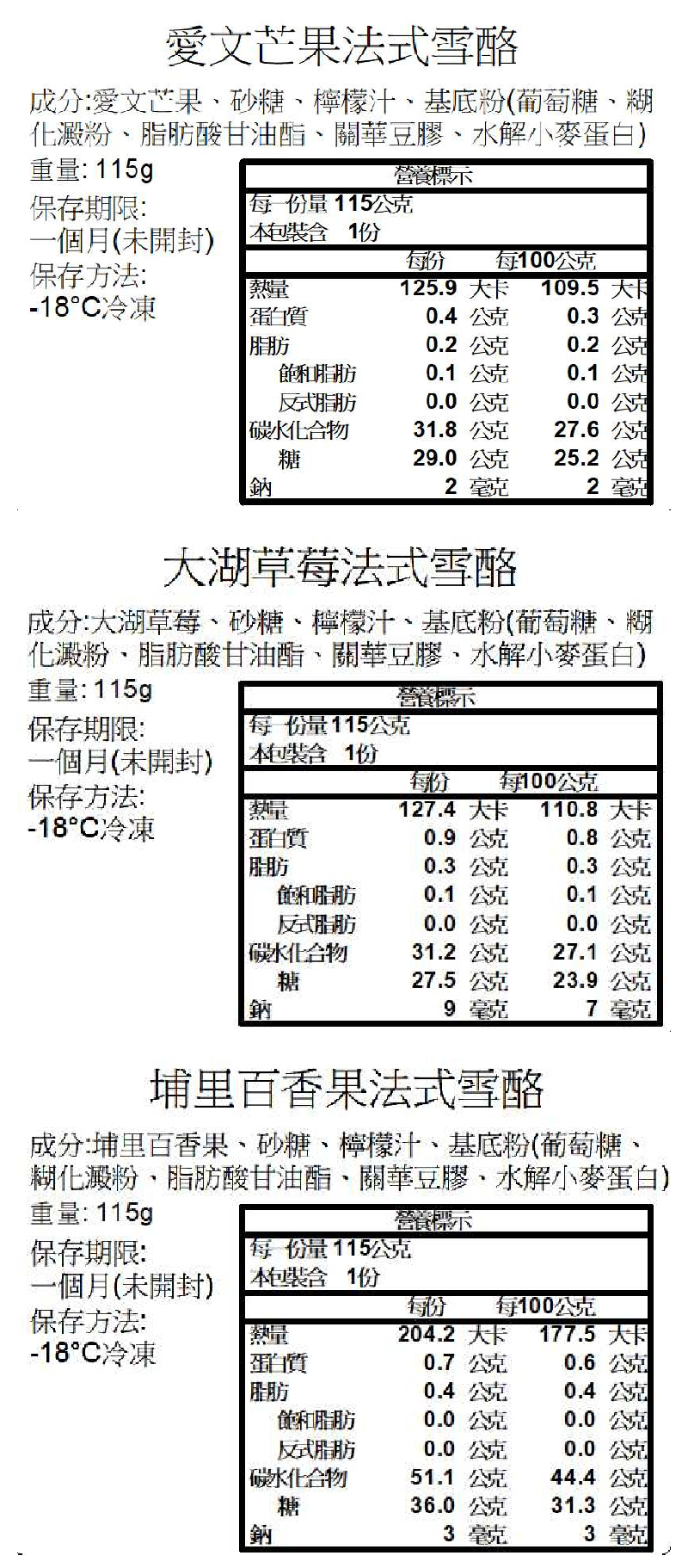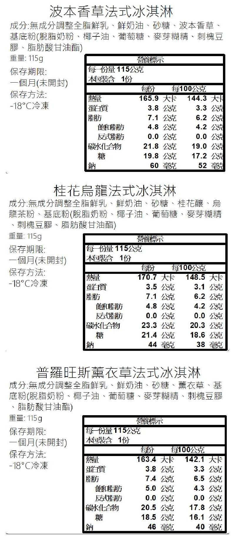 口味一覽