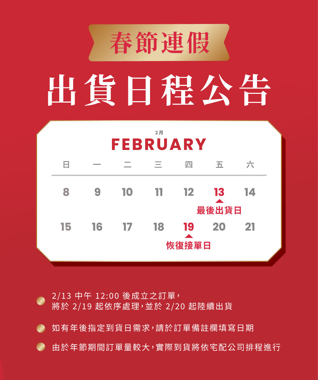*若遇颱風等因素,將依高雄市政府放假基準,不計入配送天數內