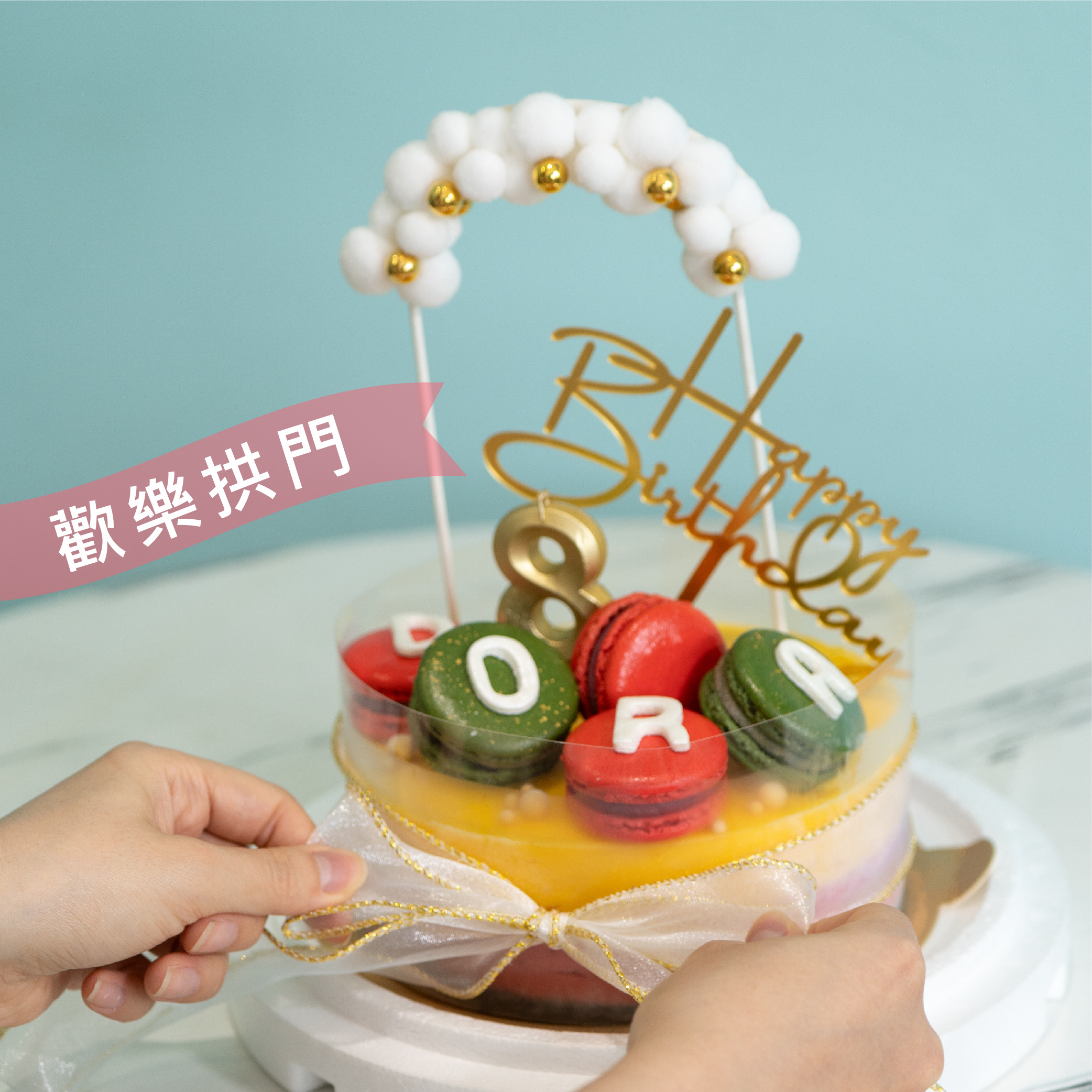 • 為避免配送途中碰撞導致蛋糕造型受損,馬卡龍及其他裝飾會獨立包裝,請於享用前按照教學影片自行組裝