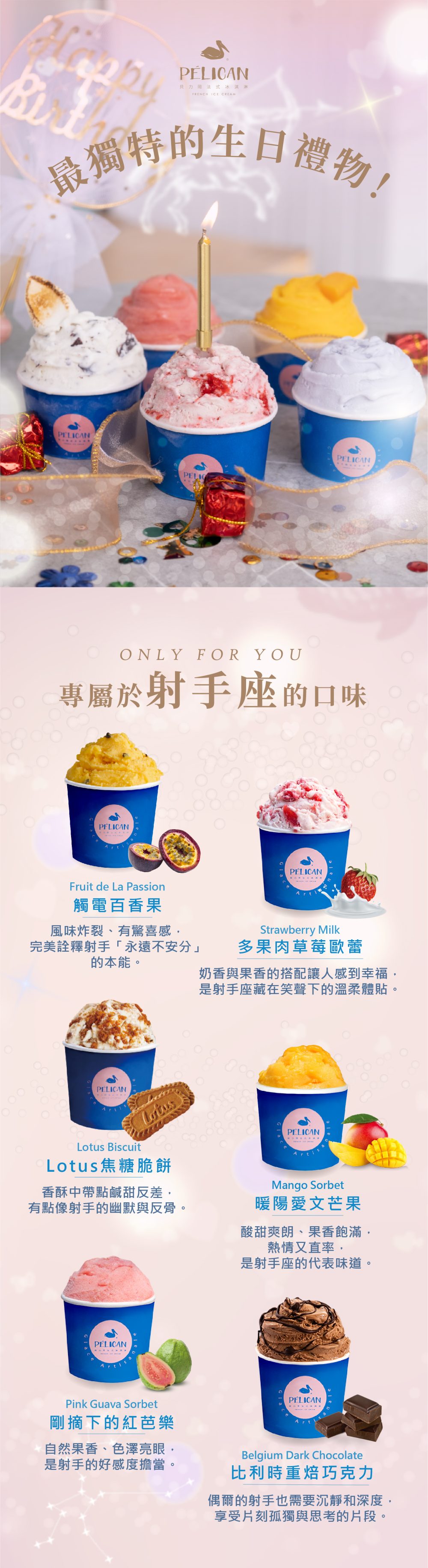 此組合精選六款為射手座打造的冰淇淋口味,給壽星一個大大的驚喜吧!
