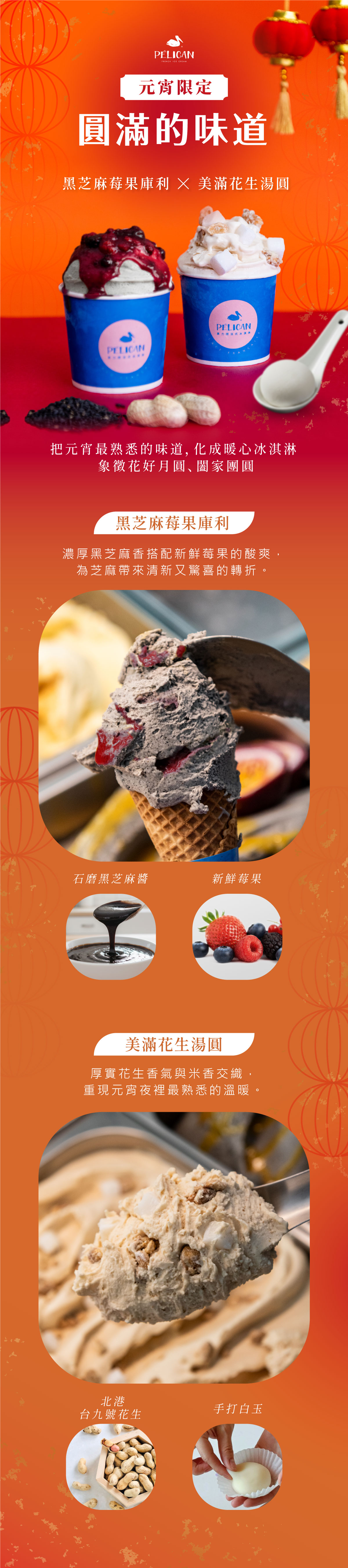 元宵節,我們把最熟悉的芝麻與花生湯圓,化成兩款暖心冰淇淋。